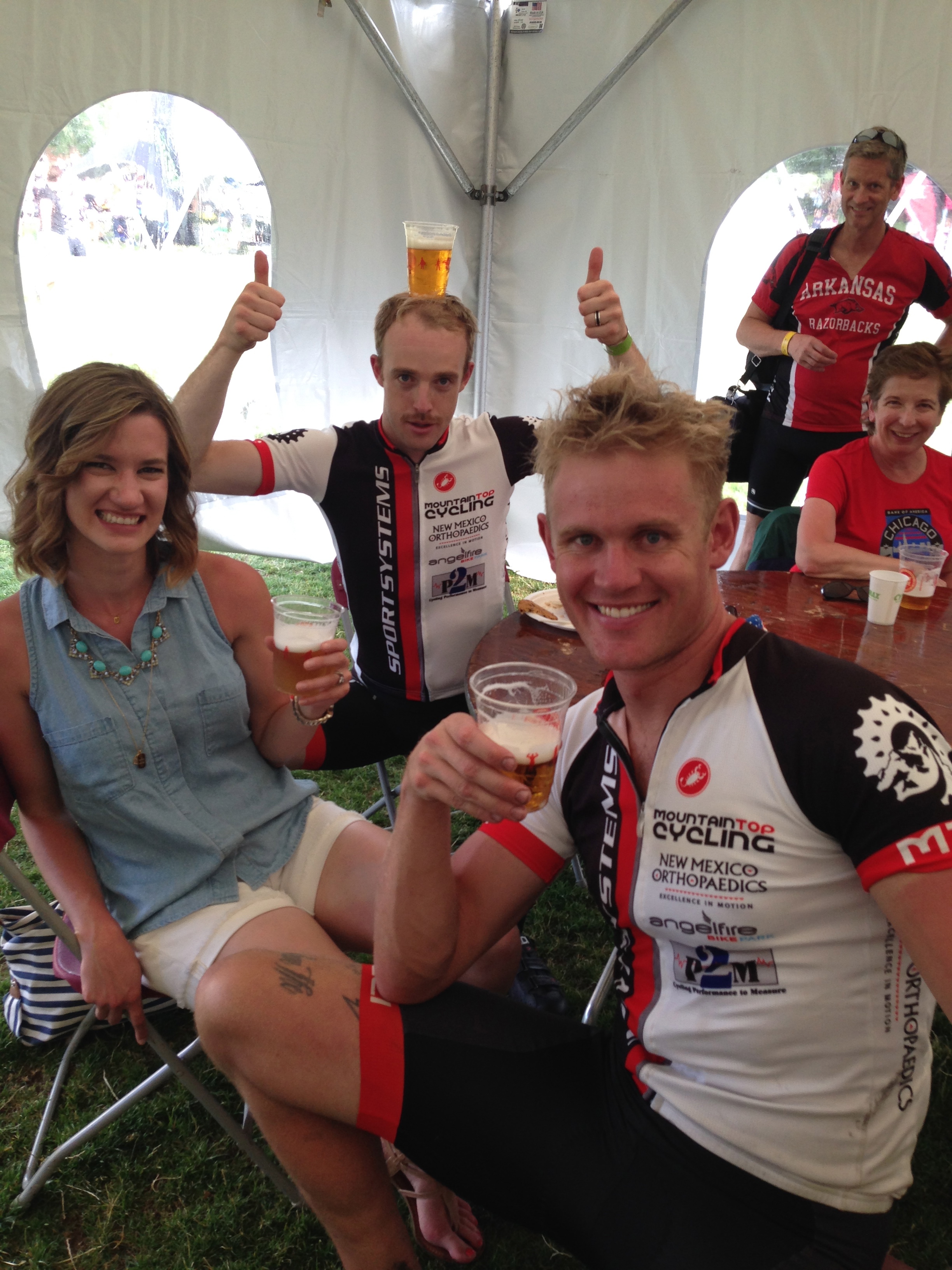 This finish area had a ton of different things going on, but one thing concerned Doug and I… Food and BEER! Lucky for us, my awesome wife quickly got in the beer line while we got food. We were greeted with beers as we sat down to eat in the shade of a large tent. We made some friends with a couple locals from Aspen as we pigged out in front of them and yelled about of much fun we had, in hindsight at least.