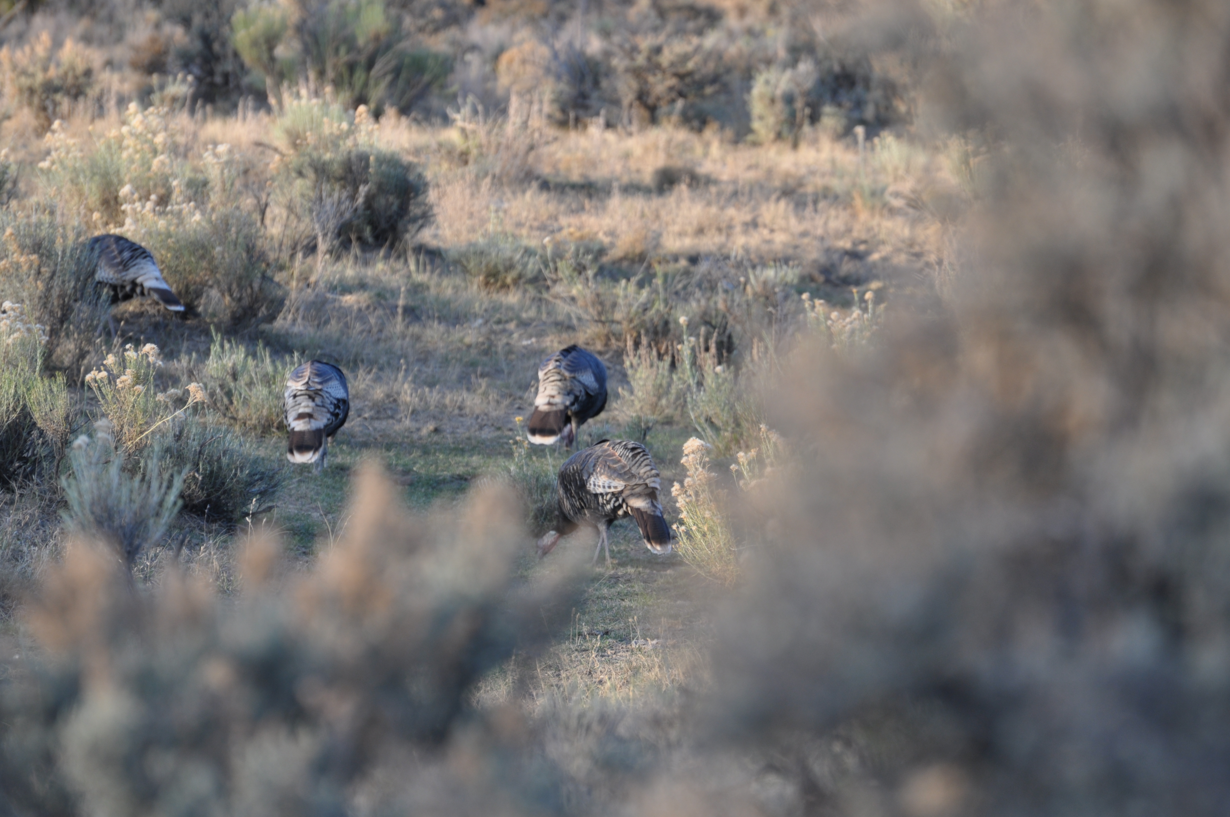 I got back to the car and headed to camp to meet up with Justin. On the way back I spotted some turkey running through some tall grass. Once we made the rendezvous, we went out to the large sagebrush meadows near the main highway to do some glassing before dark. Justin immediately spotted some elk. As the night was starting to creep upon us we drove back to camp. About a mile before our turn we spotted three deer. Justin slowed the car to a stop so we could get a good look at ’em. They were only about a 100 yards off of the road on some private land feeding in the dusk. One finally lifted it’s head to take a look at us. It was then that it finally hit me that this hunt was for real. As the deer lifted it’s head we couldn’t help but notice the massive antlers protruding far above the other two deer next to him. I finally had this sense of excitement and determination. Too bad it was the day before the hunt started and the three deer were hanging out on the small sliver of private land in the area. At least I knew the exact spot we would be going the next morning!