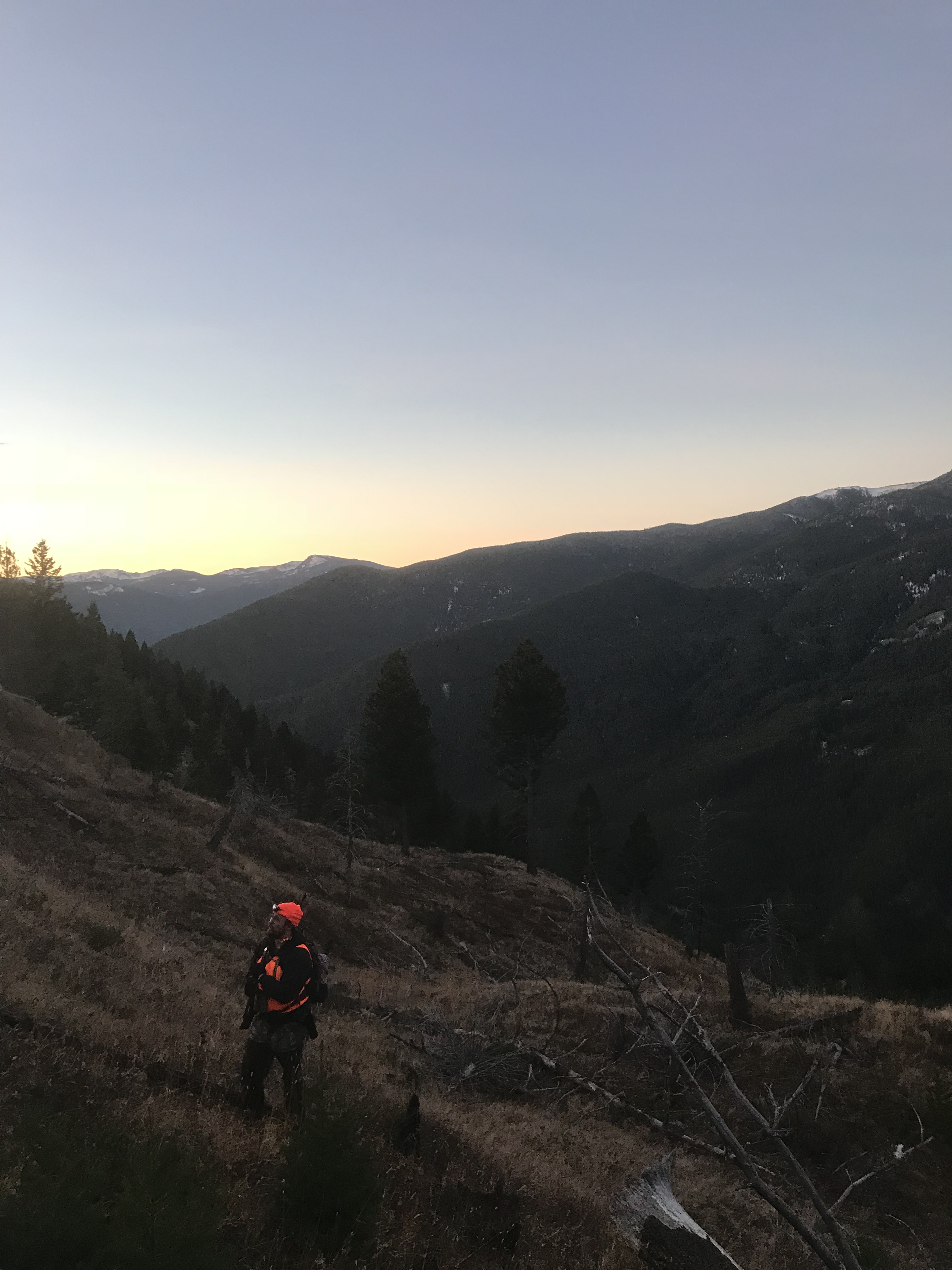 Accompanying me was Josh. This would be his first day on a dedicated elk hunt. He had the fortune of harvesting a mule deer two days prior on opening day of the Montana rifle season. Having never hunted elk before, Josh was looking forward to putting in the effort of trying to find some elk. He was bringing along his grandfathers rifle for the elk and a handgun for fun. Of the things we had in common, we both had never seen an elk while elk hunting (obviously Josh hasn’t since this was his first day).