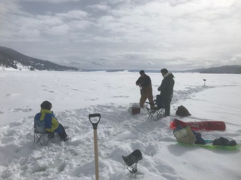The high in Bozeman was broadcast as -5 degrees for the day, but we were headed uphill and out of the valley inversion to Hebgen Lake to do a little ice fishing. The catch, no pun intended, a storm was threatening to come in. With it was the potential of high winds, which would push the temperature down to -35. We brought some extra layers. Leading the charge was my best friend Karl, my former neighbor. More to come on the nick name.